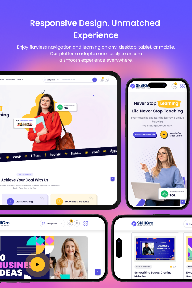 Developed using the Laravel PHP framework, Skillgro guarantees robust security, protecting against SQL injection, XSS attacks, and CSRF attacks, ensuring a safe and reliable learning environment.